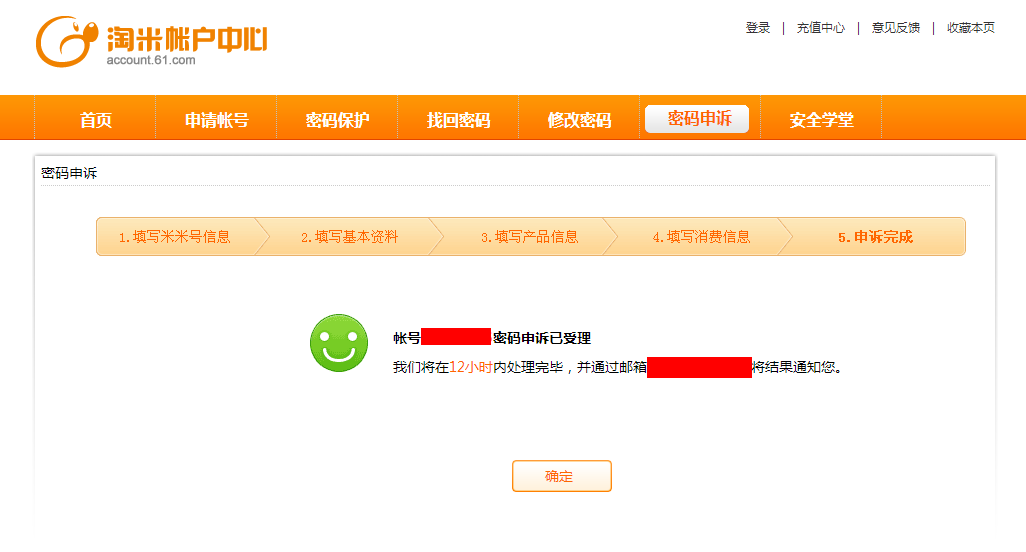 5.申诉完成,将会在12小时内处理完毕,并通过邮箱将结果告知您!