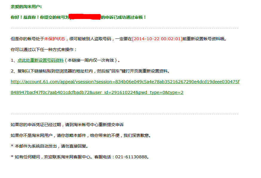 6.申诉成功!请点击邮件内的对应链接重置自己的密码与密保方式哦!