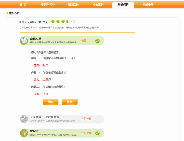 一定要牢记你的新的密保问题答案!为了安全起见,建议你将它们记录在自己的小本子上好好保管,千万不要告诉别人喔!