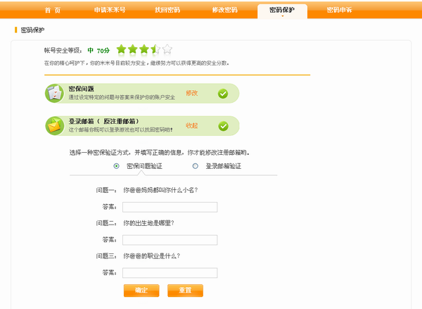 (1)密保问题验证: