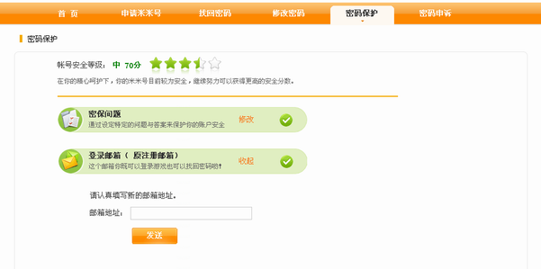 1.进入淘米帐户中心密保保护页面,点击登录邮箱的“修改”按钮。 如果登录邮箱已忘记,请直接进行密码申诉。点此查看申诉小技巧。