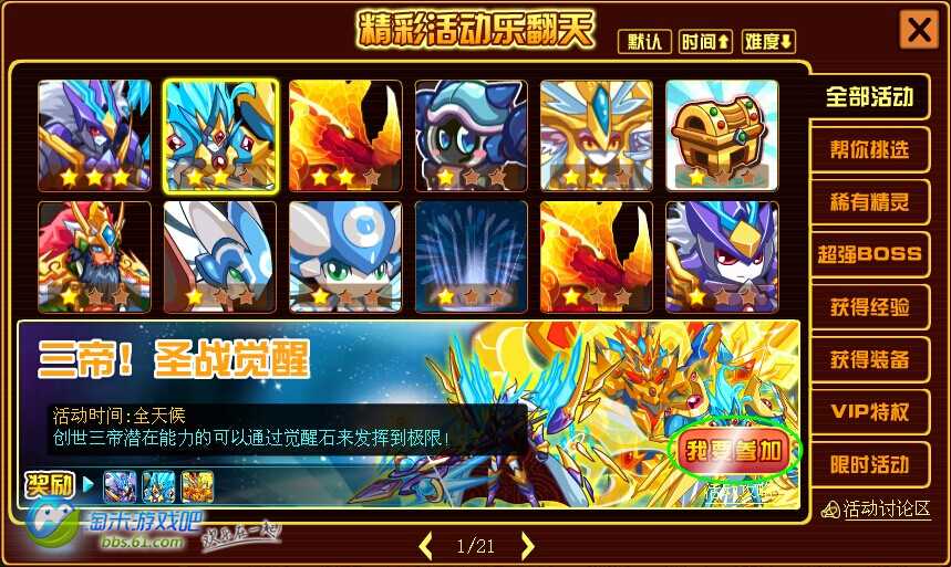 首先赛尔们可以在活动面板中找到三帝觉醒活动,点击我要参加去看看吧~