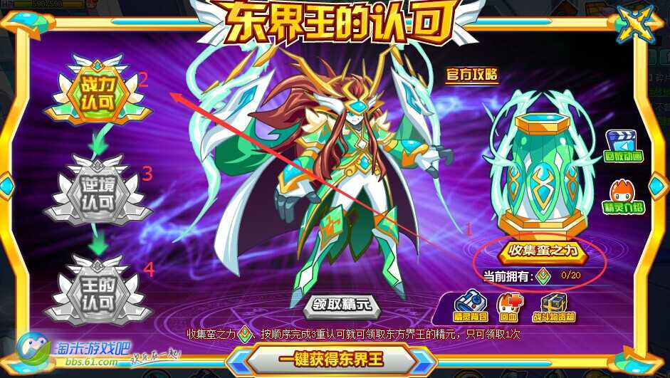 收集满【蛮之力】、完成三个挑战就可领取东蛮王的【东方界王精元】,具体攻略如下: