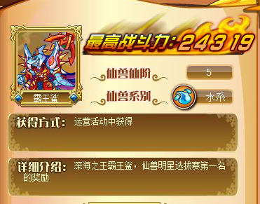 五阶仙兽:霸王鲨,获得渠道:
