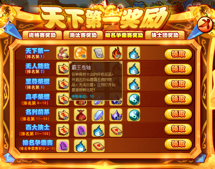天下第一比武大会第一名奖励的是哪只仙兽?